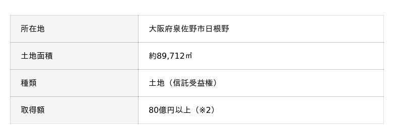 当社グループは、2025年7月1日、大阪府泉佐野市にある「イオンモール日根野店」の土地及びその隣接地を取得し、イオンリテール株式会社(以下、「イオンリテール」という。)との間で、定期借地権設定契約を締結したことをお知らせいたします。