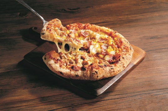 店内で一枚一枚焼き上げて提供する「ピッツァソリデラ」の限定商品です。口あたりの良いポテトサラダとベーコン、チーズのうまみ、ほのかなコーンの甘みを楽しめるポテトベーコンピッツァとチキン、クリーミーなチーズとマヨネーズ、ほのかなコーンの甘みを楽しめるてりやきチキンピッツァを一度に堪能できるおすすめピッツァです。