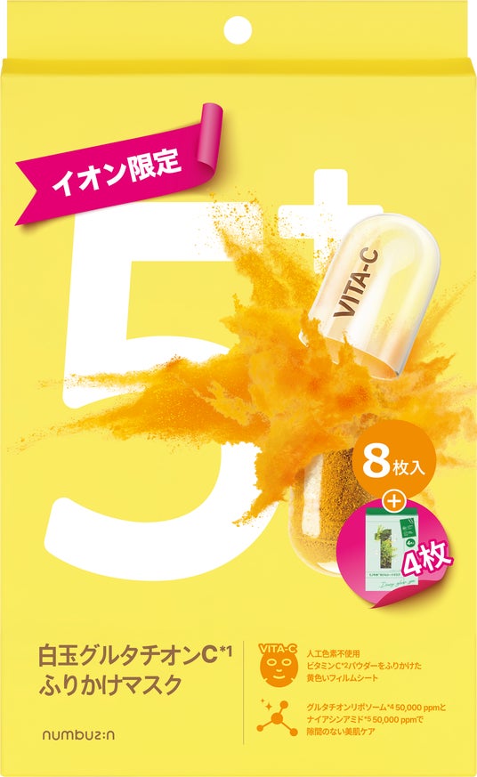 ナンバーズイン(numbuzin)は韓国発のスキンケアブランドで、肌の悩みに応じて選べるシートマスクが若年層を中心に人気となっています。5番シートマスク8枚に、1番シートマスク4枚がついてくるお得なイオン限定セットを展開します。
