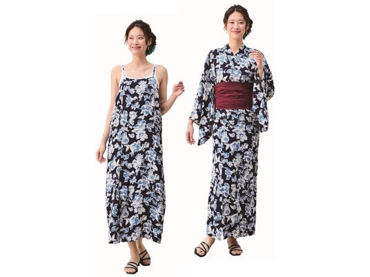 ワンピースの上に上衣を羽織るだけの、面倒な着付け要らずのセパレートタイプのゆかたです。脇ファスナーに変更し、より着脱しやすい仕様になっています。