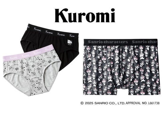 サンリオの人気のキャラクター「クロミ」をデザインしたボクサーブリーフとショーツです。ボクサーブリーフはサステナブル素材を使用。ショーツは総柄とワンポイントのセットで展開します。(品揃えのない店舗もございます)