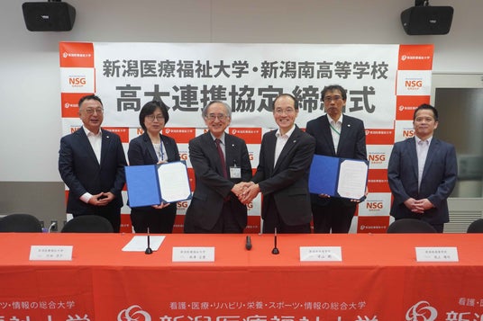 NSGグループの新潟医療福祉大学(以下、本学)は、7月4日(金)、高校生に対して医療系資格・職業についての理解を深める機会を創出し、将来地域社会に貢献する人材を発掘・育成することを目的に、新潟県立新潟南高等学校と高大連携協定を締結しました。