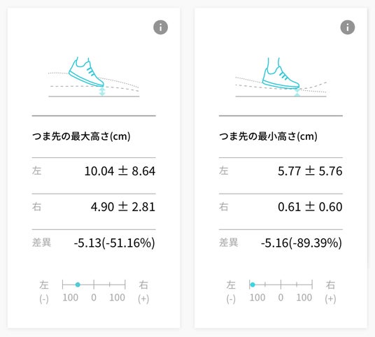 つま先の最大/最小高さと標準偏差を見やすく表示