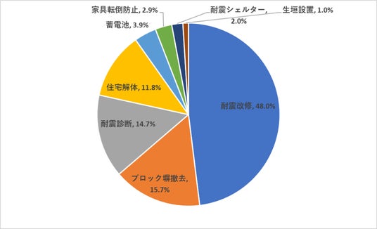 耐震改修費用の補助金が48%とほぼ半分を占めています。