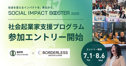 当社と仙台市は、令和6年度より社会課題の解決と事業の成長を同時に目指す仙台・東北地域の起業家を対象とした支援プログラム「TOHOKU SOCIAL IMPACT BOOSTER」を実施し、2025年7月1日よりエントリー2期の受付を開始いたします。
