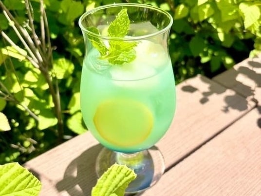 ブルーキュラソー、グレープフルーツジュース、ホワイトグレープフルーツ、レモン、ミント 夏の夜空にレモンで花火に見立てたドリンク。レモンの風味とグレープフルーツで夏を感じるスッキリ感があります