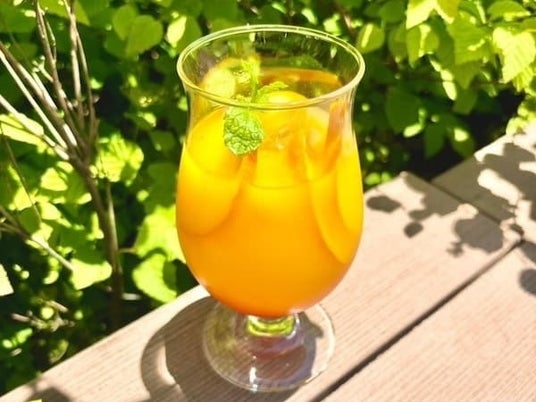グレナデン、オレンジジュース、オレンジスライス、ミント 夕焼けにオレンジは紅葉をイメージしたドリンク。グレナレンシロップにオレンジの甘味が重なりますが甘すぎず程よいです