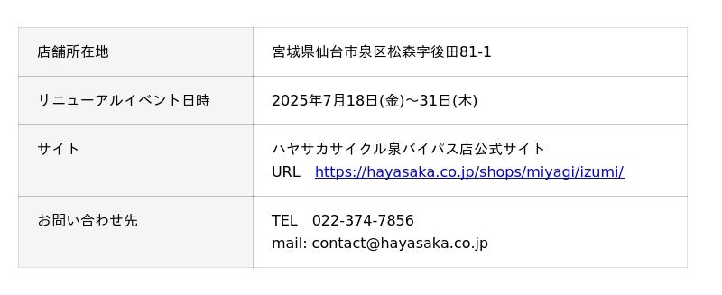 株式会社早坂サイクル商会は、2025年7月18日(金)ハヤサカサイクル 泉バイパス店をリニューアルオープンいたします。新しい店内ではショールーム面積を拡大し、さらに多くの車両をご覧いただくことができるようになりました。杜の都らしい躍動感と疾走感をコンセプトにデザイン。調色調光照明やサウンドシステム採用で更に魅力的なモーターサイクルを演出。二輪車が持つ美しさや魅力を引き出し最大限に感じることが出来る特別な店舗。お客様に特別な空間をお届けします。これまで以上にお客様のご期待に応えるべく、地域最大級の品揃えと最新設備を導入してお客様をお迎えいたします。