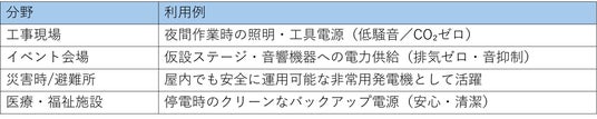 - 屋内利用が可能 ― テナント内や店舗内のバックアップ電源に