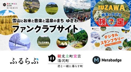 本施策はクラウドサーカスが提供する、“販売促進”と“ファン育成”を同時に実現できるファンマーケティングツール『Metabadge(メタバッジ)』を用いており、第一弾として、本年7月23日(火)から9月1日(日)には湯沢町の 音楽にまつわるクイズが楽しめる「音楽とゆざわ検定」、7月26日(金)~28日(日)に、湯沢町の特産品が当たるデジタルスタンプラリー「音楽とフジロックのまち ゆざわ」を開催します。