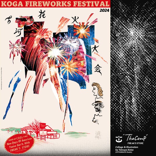 初となる古河花火大会×FREAK'S STOREのコラボレーションは、アーティスト【小磯竜也】氏による過去の花火写真を用いた限定Tシャツを販売。