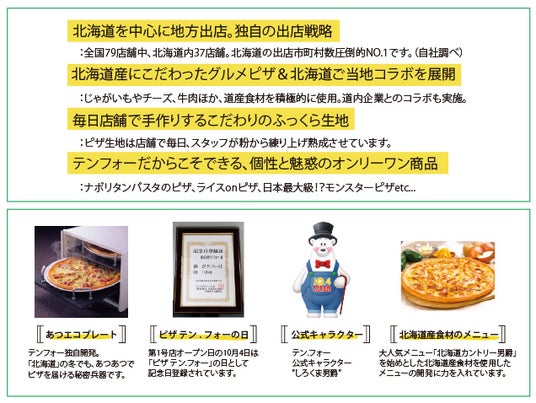事業内容:宅配ピザチェーン「テンフォー」・宅配肉丼チェーン「第104代肉横綱」を展開