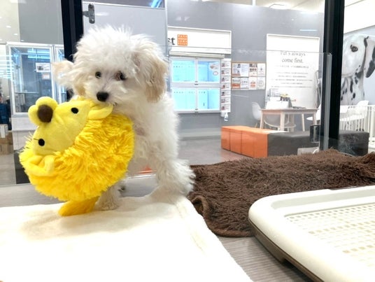 回復し、店舗で家族を探すトイ・プードル