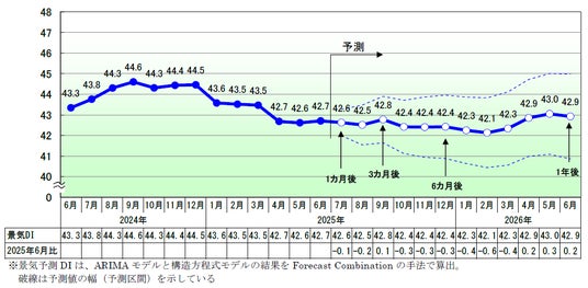 2025年6月の景気DIは前月比0.1ポイント増の42.7となり、小幅ながら6カ月ぶりに改善した。