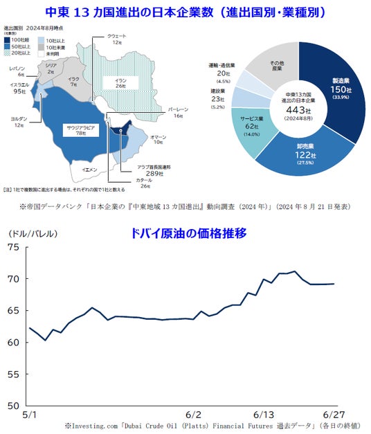 - イスラエルとイランの紛争に対して、企業からは原油価格の動向や、影響の不透明さを訴える声が多数寄せられた- 2024年8月時点でのイスラエル進出企業は95社、イラン進出は26社だった