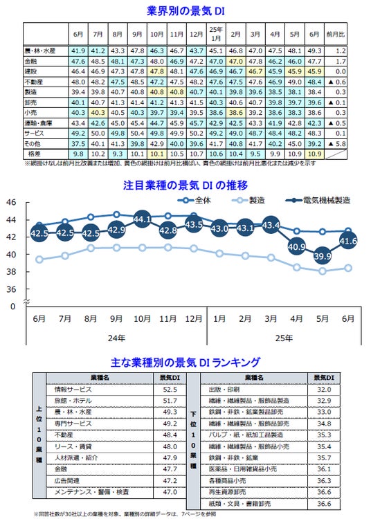 株式会社帝国データバンクは、2万6,237社を対象とした2025年6月の国内景気動向を調査・集計し、景気DIとして発表いたしました。
