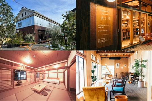 1階には、茨城県産の豊かな食材をふんだんに活かした創作中華料理を提供するカフェ&ダイニング「CAFE & CHINESE KURAGE」を構え、吹き抜けでつながる2階はプライベートハウスとして、1日1組限定で利用できる宿泊空間を設けています。和室や建具など既存の要素を生かした穏やかな空間の中で、大洗ならではのゆるやかな時間を体感していただけます。