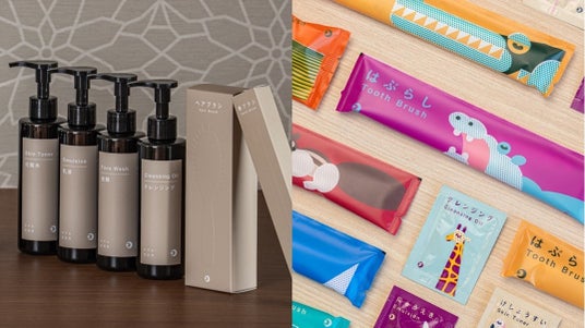 約99%が天然由来成分となるスキンケア・ヘアケアアイテムをはじめ、有機JAS認証原料を使用したデカフェコーヒーやお茶、木更津産のクロモジ精油を用いたバスソルトなど、環境配慮と地域資源の活用を融合させたプロダクトを開発しています。また、“再資源化”を前提としたパッケージ設計や、客室に調和する洗練された“和モダン”なデザインなど、細部にわたって機能性とデザインを両立したサステナビリティの実現を目指しています。