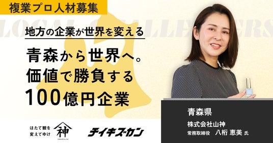 このたび、青森県に本社を構える株式会社山神が、100億円企業への進化に向けて、チイキズカンを通じて3つの重点領域で複業プロ人材の募集を開始しました。