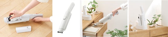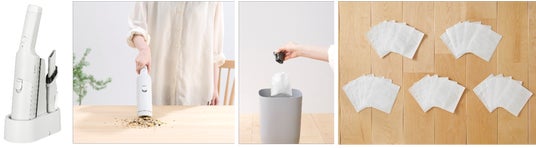 今回発売する「充電式紙パックハンディクリーナー」は、当社のハンディクリーナーで初(※1)の紙パック式で、砂やジャリを吸引しても手入れが容易です。サイクロン式では構造的にフィルター掃除や水洗いなどメンテナンスの手間がある一方、本製品は紙パック式のためダストパックを捨てるだけで済みます。さらに、当社で初めて(※3)ワンタッチで捨てられる構造を採用することで、ダストパックに触れずに食べこぼしからペットの毛まで幅広いごみをより衛生的に処理できます。本体は、約550gと軽量ながら、500mLペットボトル約10本分の重さを持ち上げられる(※6)強力な吸引力を実現しています。使い捨てダストパックの集じん容量は約0.15Lで、付属品として約2年分(24枚)(※7)を同梱しています。