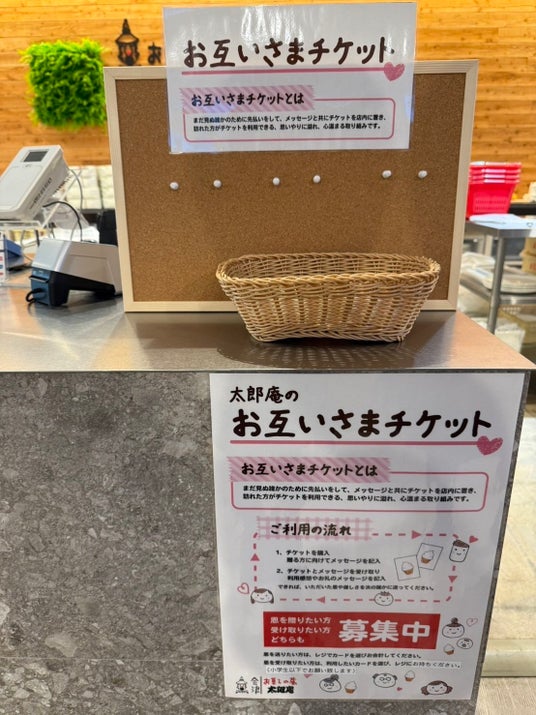 2025年5月より福島県会津地方を中心に展開する老舗の和洋菓子店 株式会社太郎庵の鶴ヶ城前店(福島県会津若松市)と郡山桑野店(福島県郡山市)にてお互いさまチケットが導入されました。