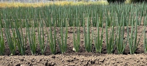 今年4月、長ネギの品種「夏扇パワー」の苗を畑に定植しました。スキーポンを与える区画と与えない区画を設け、それぞれの生育状況や、秋の収穫時のデータを比較しています。