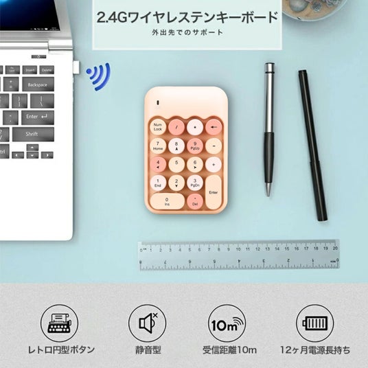 「オフィスデスクがブラックボックス一色で退屈?」そんな日常にカラフルなレトロムードを吹き込むのが、このタイプライター風テンキーパッドです。