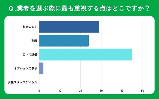 ・プロに依頼する際の重視ポイントとして「口コミ評価」と回答した方が全体の約半数を占めていた。