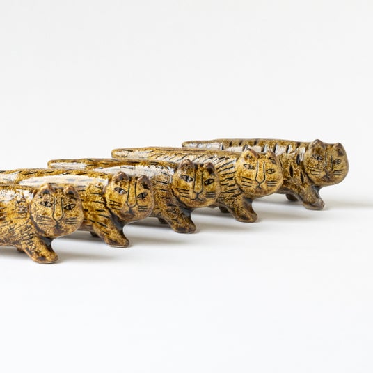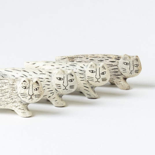 日本は小さな小さな国なのに、全国各地に個性あふれる陶磁器の工房があり、そこには作り手の人生と自然が共にあります。リサは、そうした関係性に敏感で、常にそれをリスペクトしていました。自分の作品に、作る人の個性が現れることを喜んでいました。自然と人々が最優先で、その次に、自分の作品づくりがあったのです。「にっぽんのリサ猫」でやりたいことは、ただリサの原型をそのまま量産することではありません。リサ・ラーソンの個性が育てた猫が、日本各地の窯元の手で、作り手たちの個性に触発されながら変化し、すべてがブレンドされた混血の猫が生まれることです。言い換えれば、野良猫のように自由に変化しながら、たくましく生きる猫を日本の風土の中に立たせることなのです。そして、その猫は、リサの血を、今にしっかりと受け継いでいるのです。