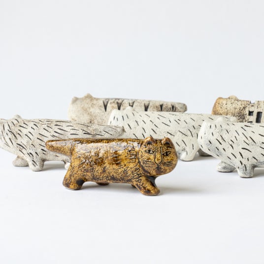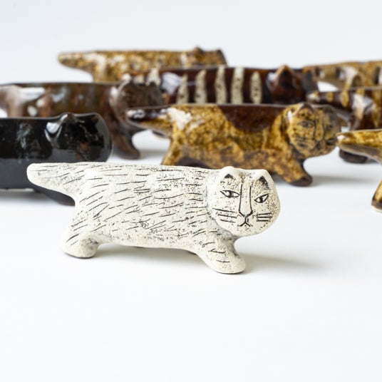 我こそは、丹波のリサ猫である。全国を旅する「リサ猫」プロジェクト第三弾は、兵庫県丹波篠山市に到達。日本を代表する古窯にて五番と六番の猫が誕生しました!たくましくシノギを削って生きる野良猫そのものを作り出したのは、鎬(しのぎ)という伝統的な表現技法を応用した手法。荒々しさとプライドがしっかり刻まれた「お侍スピリッツ」を持った誇り高きリサ猫、白の「きりしろ」と赤土の「つちまさ」。
