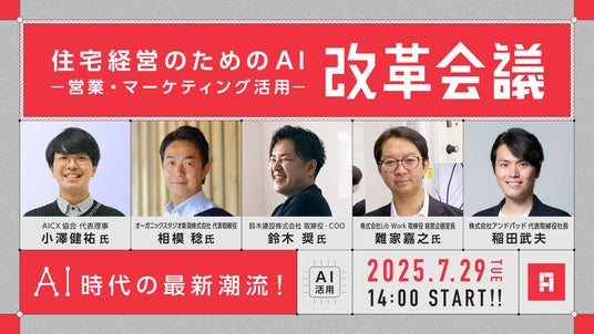 クラウド型建設プロジェクト管理サービス「ANDPAD」を運営する株式会社アンドパッド(本社:東京都千代田区、代表取締役:稲田武夫、以下アンドパッド)は、工務店・住宅会社を対象とした「住宅経営のためのAI-営業・マーケティング活動-改革会議」を2025年7月29日に開催します。