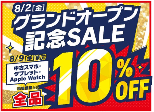 実施内容 :中古スマホ・タブレット・Apple Watchなど税別価格から全品10%割引
