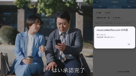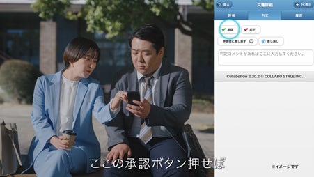 続編の今回は、コラボフローを導入した後の「コラボフローでの申請・承認」の光景を演じていただきました。