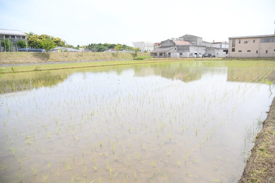 (テニスコート8面分の水田に、子どもたちが植えた苗が力強く根を張り広がりました)