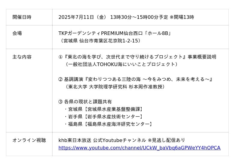 特設サイトURL: https://tohokuuminiiikoto.com/sanken2025/