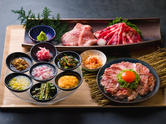 本プランでは、名物の「幡ヶ谷タン刺し」「ドラゴンハラミ」はもちろん、定番のねぎ塩牛タンやハラミを食べ放題でお楽しみいただけます。また、食べ放題用にご用意した無限薬味盛りは、玉ねぎピクルスやニラキムチなどオリジナルの焼肉のお供を盛り合わせました。味変やお口直しにぴったりの薬味を活用し、お気に入りの食べ方を見つけてください。