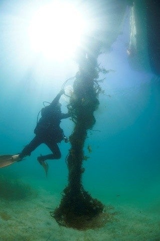 写真:ダイバー(WWFジャパン ヤップ・ミンリー)が手にしているのは1メートルの長さのものさし
