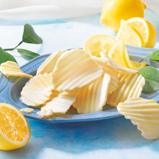 さわやかな酸味が特長のレモンチョコレートをポテトチップの片面にコーティング。レモンの味わいが引き立つよう、レモンチョコレートにはチーズ風味・ヨーグルト風味のチョコレートを隠し味に加えています。レモンのさわやかな香りと酸味、ポテトチップの塩味がひとつになり、塩レモンを思わせる味わいです。