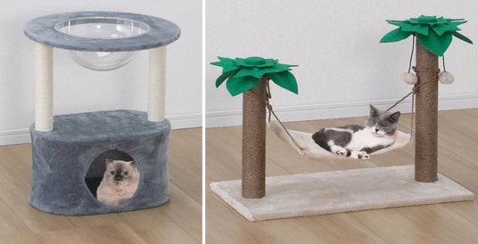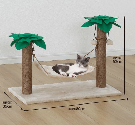 支柱が爪とぎになっているのでストレス解消に最適です。ヤシの木にしがみついているような姿が可愛らしい。小型サイズで手軽に設置できます。