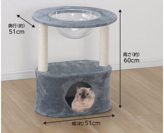 支柱が爪とぎになっているのでストレス解消に最適です。また、くつろいでいる猫の姿が見えるクリアボウル付き。小型サイズで手軽に設置できます。