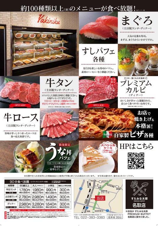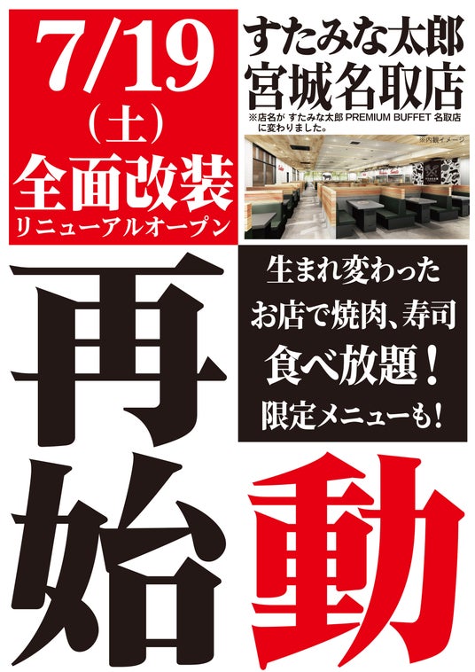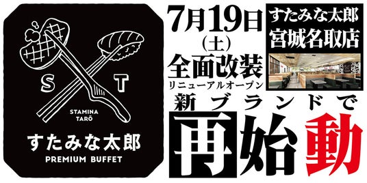 7/19(土)全面リニューアルオープン!すたみな太郎PREMIUM BUFFET名取店