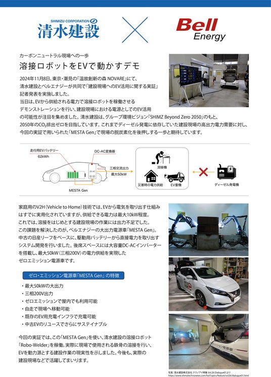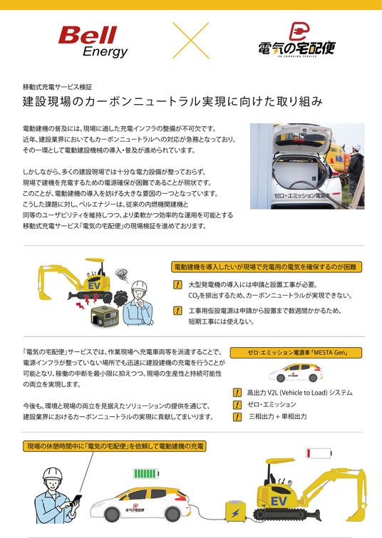 ベルエナジー株式会社(所在地:茨城県つくば市)は、「電気の宅配便」サービスを本格的に開始いたしました。本サービスは、当社のEVバッテリー応用技術を活用したMESTAシリーズのベース(電源)車両を使い、EVユーザー向けの充電サービスから、建設現場や災害時の電力供給まで、幅広いニーズに対応します。