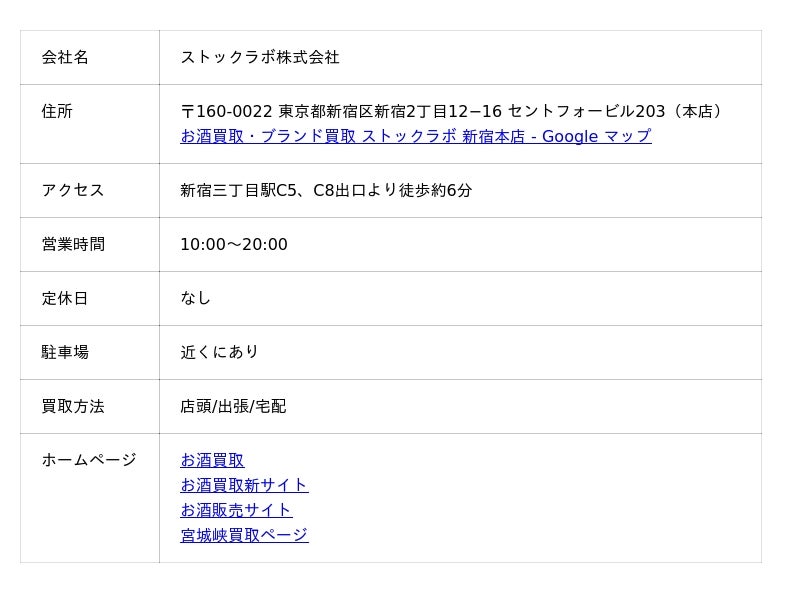 ストックラボは全国24店舗展開するお酒・ブランド品買取専門店です。ワイン買取・ブランデー買取・ウイスキー買取・シャンパン買取・日本酒買取など多彩なお酒を取り扱い、山崎25年が145万円など、ジャパニーズウイスキーの買取実績&高価買取は圧倒的。宮城峡15年:57,000円など、宮城峡も多数取引しています。