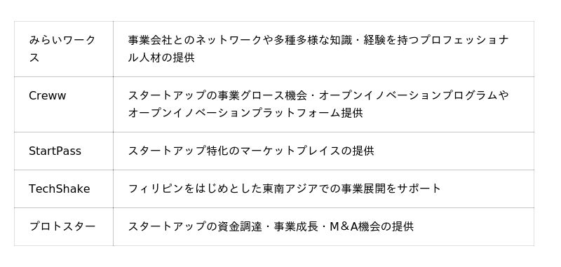 *3 アクセラレーションプログラムとは:大手企業や自治体等がスタートアップ企業に対して出資や支援を行う事により、事業共創を目指すための取り組み。