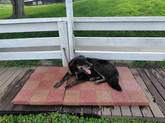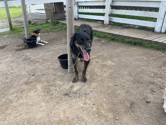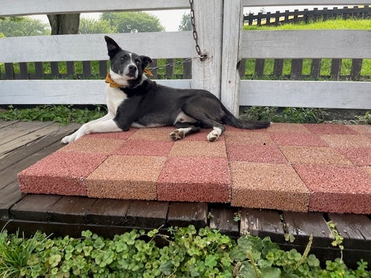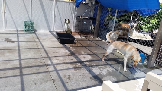ひと仕事をした牧羊犬へ、涼しさを提供します。この猛暑の中、動物たちにも暑さ対策が必要です。