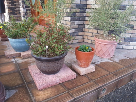 プランターの台にしますと、猛暑でもお花が元気よく咲いています。