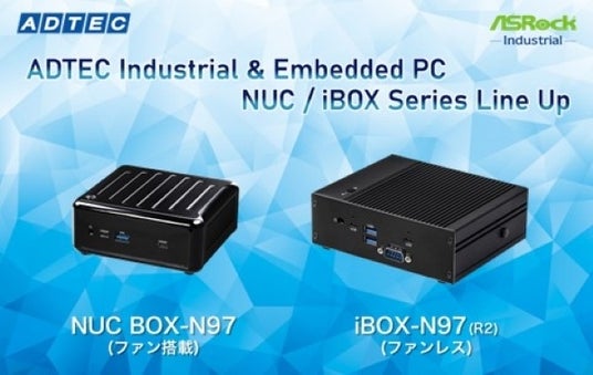 AKIBAホールディングスグループの株式会社アドテック(本社:東京都中央区、代表取締役社長:下津弘享、以下「アドテック」)は、産業用/組込み用小型コンピュータの新製品 「NUC BOX-N97(ファン搭載)」・「iBOX-N97(ファンレス)」の「N97シリーズ」2機種を2024年7月30日(火)に発売いたします。