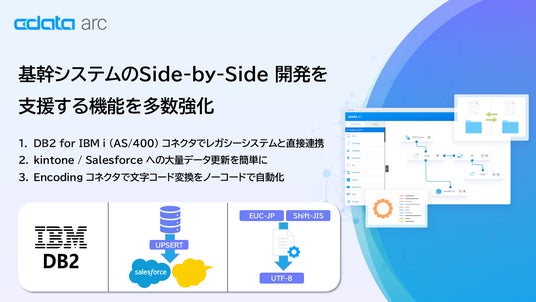 2025年7月17日、リアルタイムデータ連携コネクタのCData Software Japan 合同会社(本社:アメリカノースカロライナ州、日本オフィス:宮城県仙台市、代表社員 職務執行者:疋田 圭介、以下CData)は、B2B データ連携ツール『CData Arc 25.2』をリリースしました。今回のアップデートでは、基幹システムとSaaS の「Side-by-Side 開発」を支援する機能を大幅に強化。DB2 for IBM i(AS/400)コネクタの新規追加により、製造業で広く利用されている基幹システムとのシームレスな連携を実現し、kintone / Salesforce でのUpsert 機能のGUI 対応で大量データの効率的な処理がさらに簡単になります。さらにArcScript でのPython サポートにより、情報システム部門やSI 事業者の方に馴染みのある言語でローコードのカスタマイズをさらに加速します。
