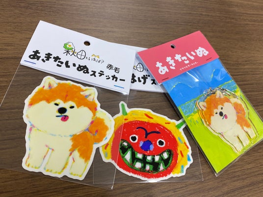 秋田で活躍するイラストレーター「ちべ」による「秋田犬・なまはげステッカー」と、「秋田犬アクリルキーホルダー」。1度見たら忘れない彼女の愛らしいイラストはとても魅力的!通常は秋田でしか購入できないので、この機会に是非!