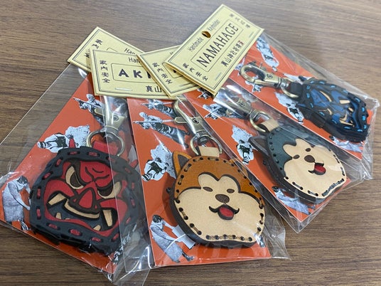 秋田のシンボルでもある「なまはげ」と、なんとも言えない愛らしい顔立ちをしている「秋田犬」。1つ1つ丁寧に手作業で作られているお洒落なキーホルダーです。御祈祷を受けているのでお守りとしても◎